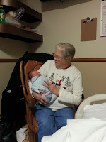 Soon after, my parents came into the room, and Peter finally announced the baby’s name. We had been keeping her name a secret until birth because we wanted a little surprise factor. I think everyone was so excited about Emma’s birth that they didn’t have many opinions on her name…but we are big fans :). Peter’s mom and Jim also came in shortly after, and they were just as excited about baby Emma. Emma’s first gifts were a teddy bear from Grandmom & Grandpop C. and an owl from Grandmom and Grandpop McC.