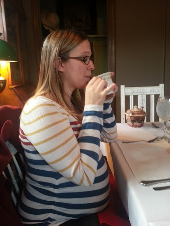 Since I am not sure if I will be pushing out a baby for Christmas, my mom and I took my grandmom out to holiday tea. I had to work Friday, so we squeezed a quick tea luncheon in. I had a delicious lobster bisque and egg salad sandwich. Yum!