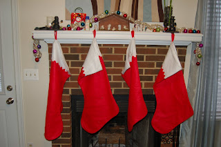 You can see that we bought and installed a new white backdoor, painted the fireplace wood, and got some new curtains and pretty faux wood blinds. It’s funny that I only take pictures of the house at Christmastime. I saw this really cute garland at Pier 1 with colorful ornaments on it, but it was $40. I decided to make it “from scratch” and ended up spending about $20 for the same thing. Not bad. And it was a fun craft one night!