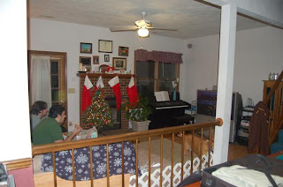 I found some pictures of Peter’s living room BEFORE I moved in, and I will try to clean up the house and post some after pictures. This is the living room at Christmastime 2007ish. You can see the brown wood everywhere-yuck! There is SO much wood everywhere in these houses. The master bedroom is the worst.