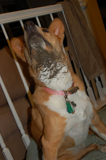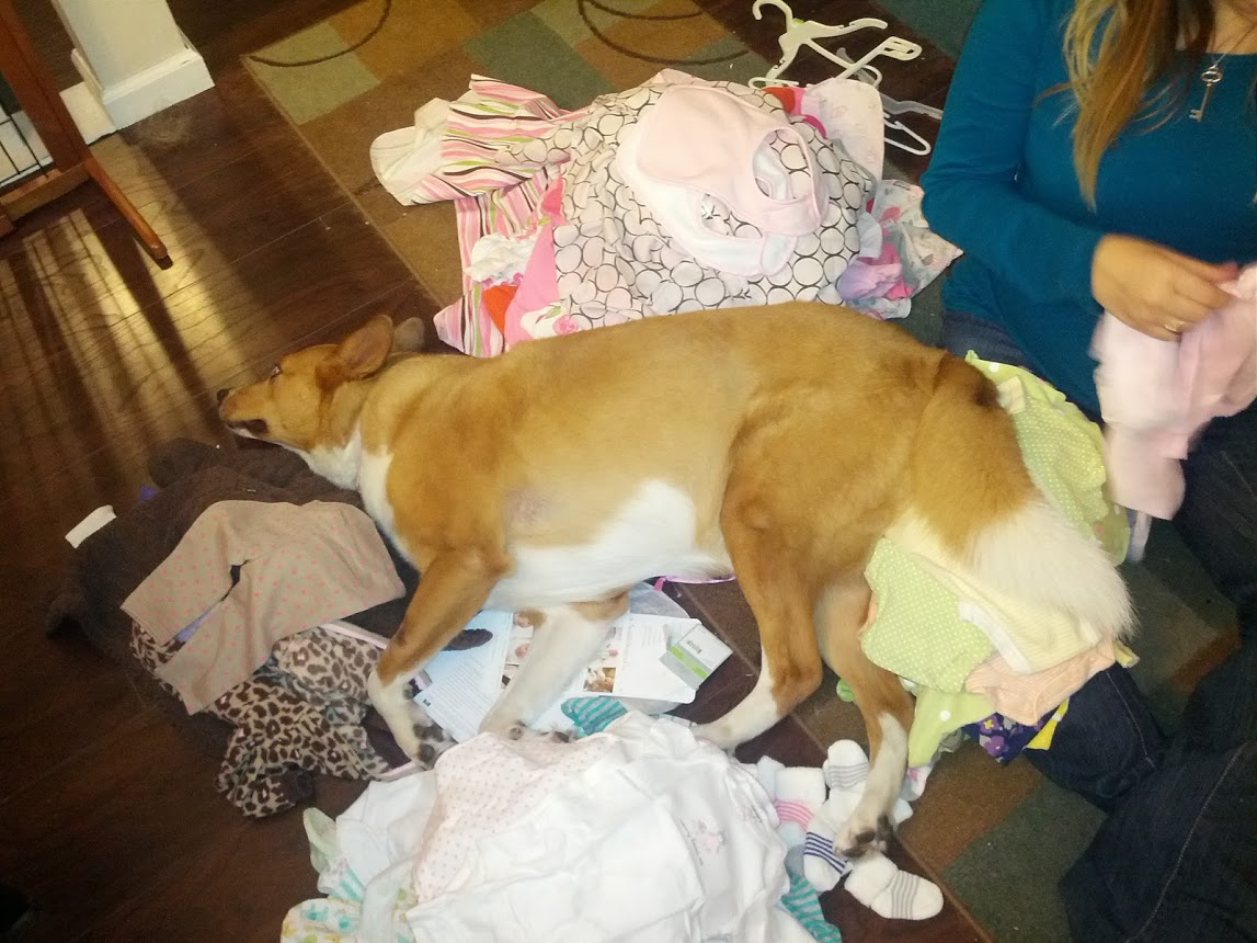 But we were happy to be home! The dogs were happy, too. Lily was curious enough to give a good lick to Emma’s head. Lennon was (and still is) very interested whenever Emma makes a noise. We are fine to have them sniff and lick her, but we are trying to manage Lennon’s interest level by giving her billions of toys to keep her busy.